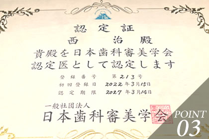 日本審美歯科学会の認定医として白くてお口元に自信を持てる治療を心がけております。