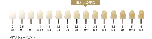 歯のシェードガイド(明るさを測定するガイド)に照らし合わせ、歯の色を測ります。個人差はありますが、そこから1〜4段階は白くなります。
